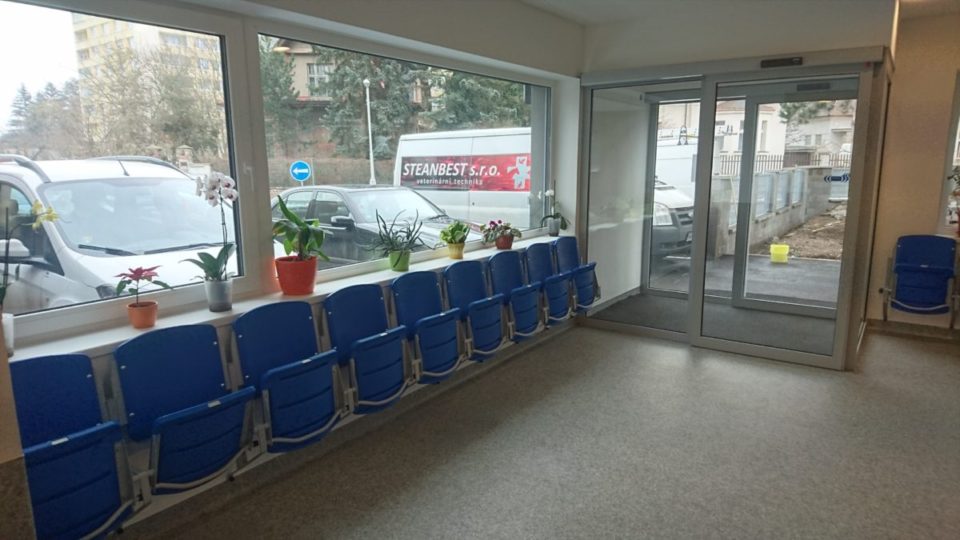 Specifická realizace – instalace plastových sklopných sedaček GSA v čekárnách veterinární kliniky. Sklopné sportovní sedačky GSA