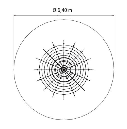 1 ocelový sloup (Ø 102 mm), žárově pozinkovaný, délka 4,00 m, s hliníkovou krytkou, (červená prášková barva), 4 provazové žebříky s plastovými příčkami, 1 šplhací lano, 1 horizontální síť, 1 síťová plocha, 16 napínacích zámků M16, pozinkované, lana a sítě z lan
