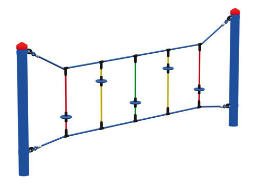 Balanční a ručkovací prvek s plastovým talířem, lana a sítě z lana Herkules (Ø 16 mm, 6 pramenů, s ocelovou vložkou), 1 horizontální žebřík s plastovými příčkami, celková délka 3,00 m (osový rozměr sloupů),