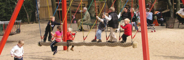Ocelová konstrukce, žárově pozinkovaná, sedací plocha ze čtyřhranného pleteného PP lana (Ø 160 mm), 8 míst k sezení pro cca 12 dětí, lana Herkules (Ø 16 mm, 6 pramenů, s ocelovou vložkou).
